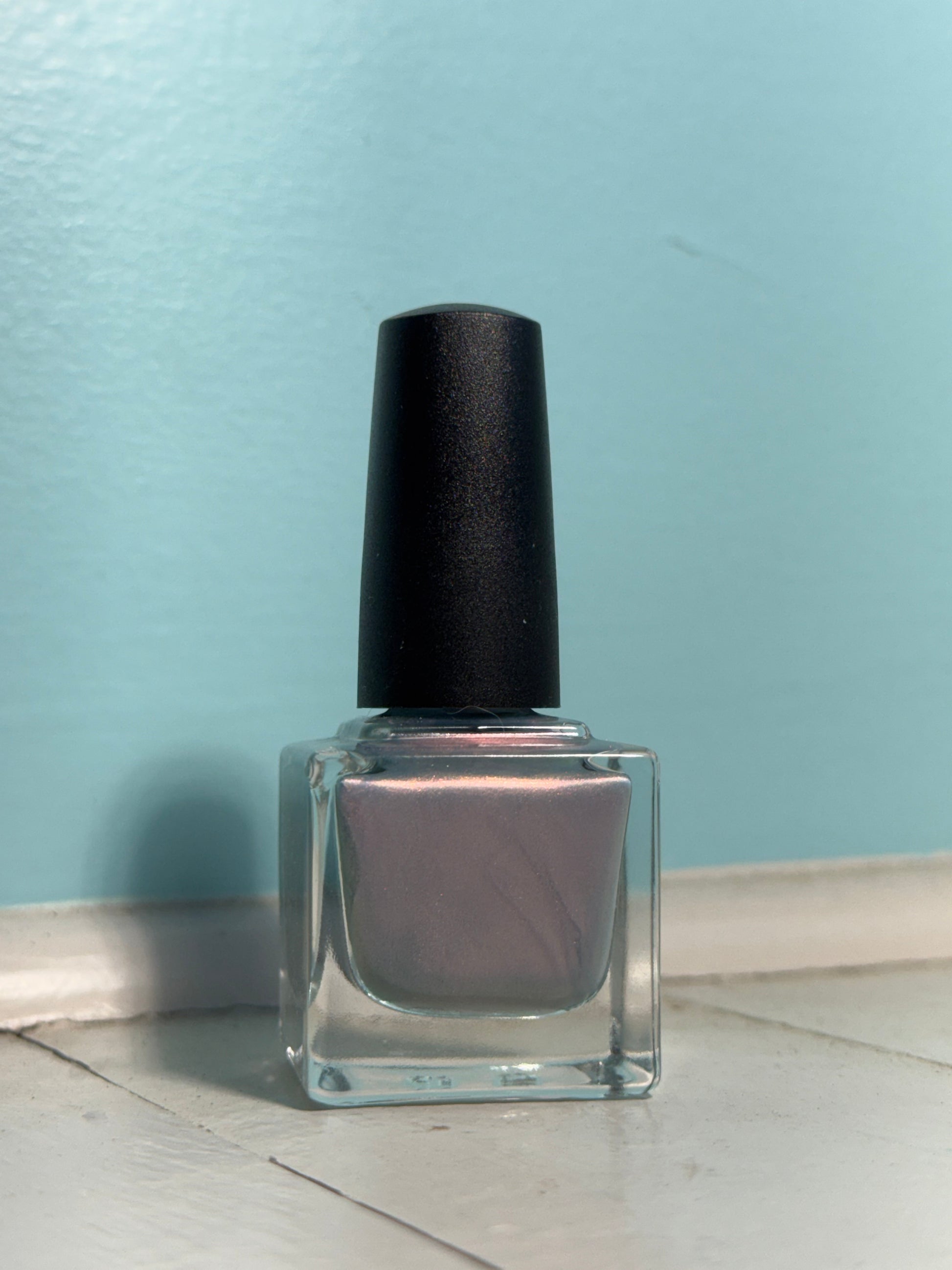 Pearly dusty blue with pink shimmer