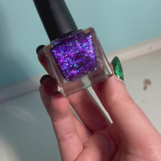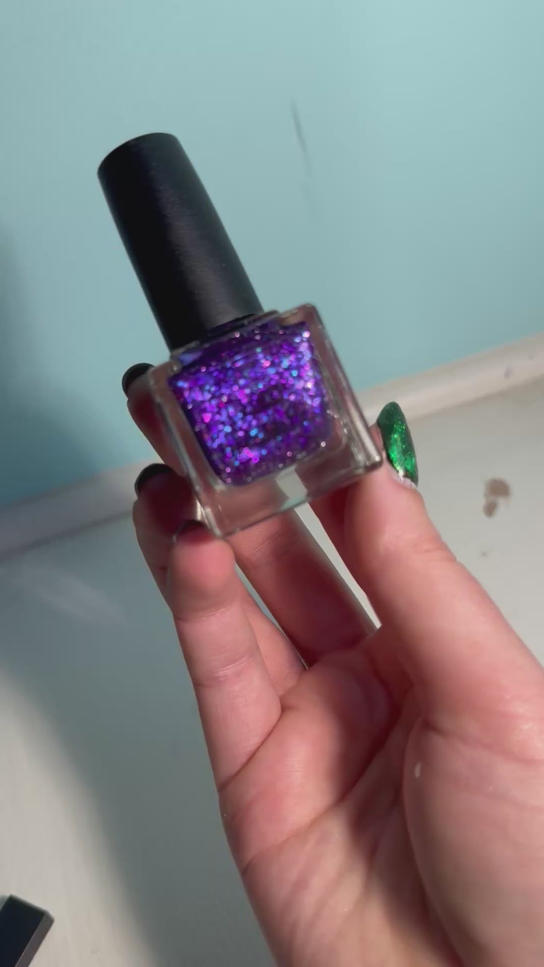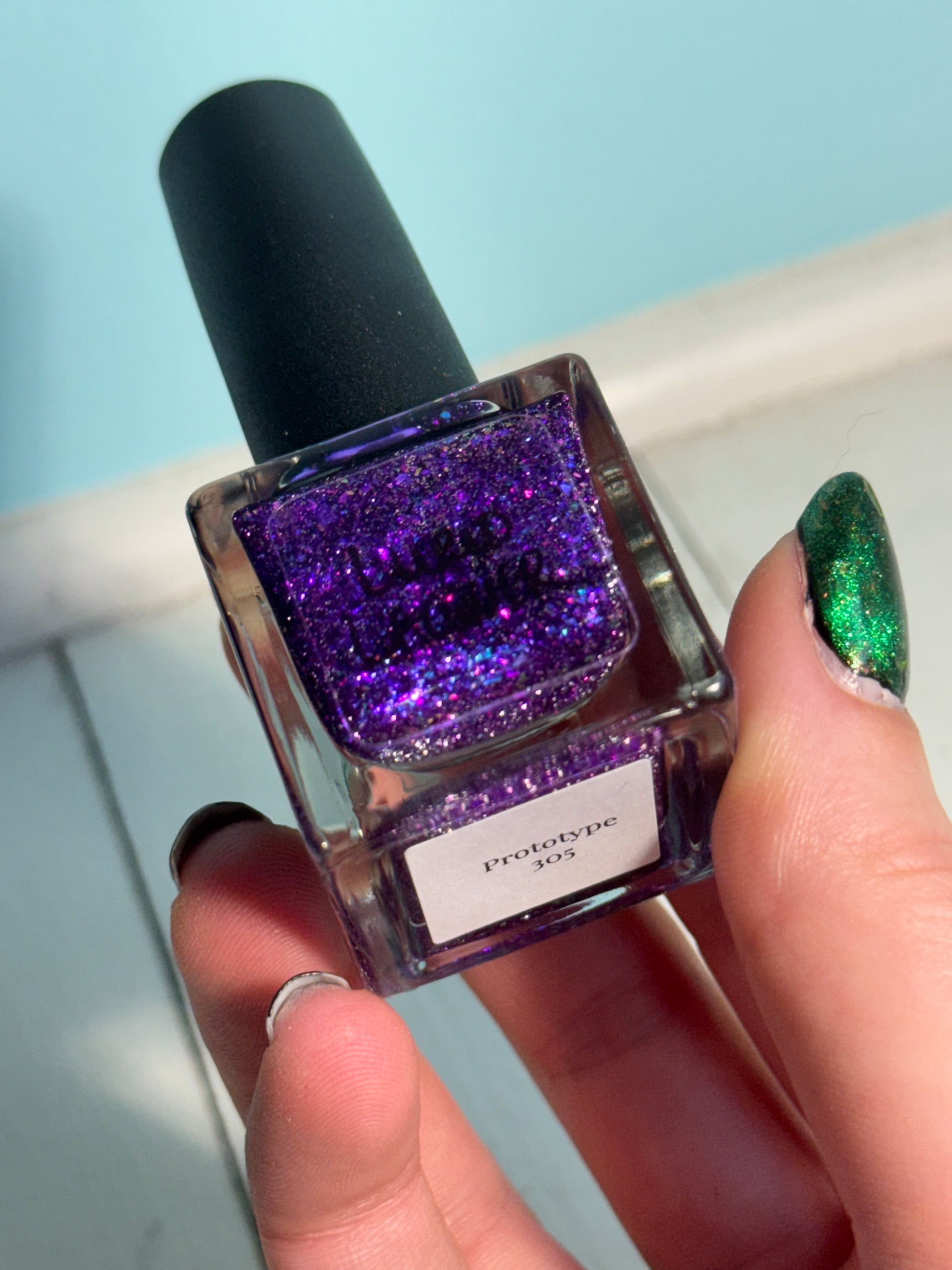 Looks like small jewel tone purple/blurple flakes with reflective glitter