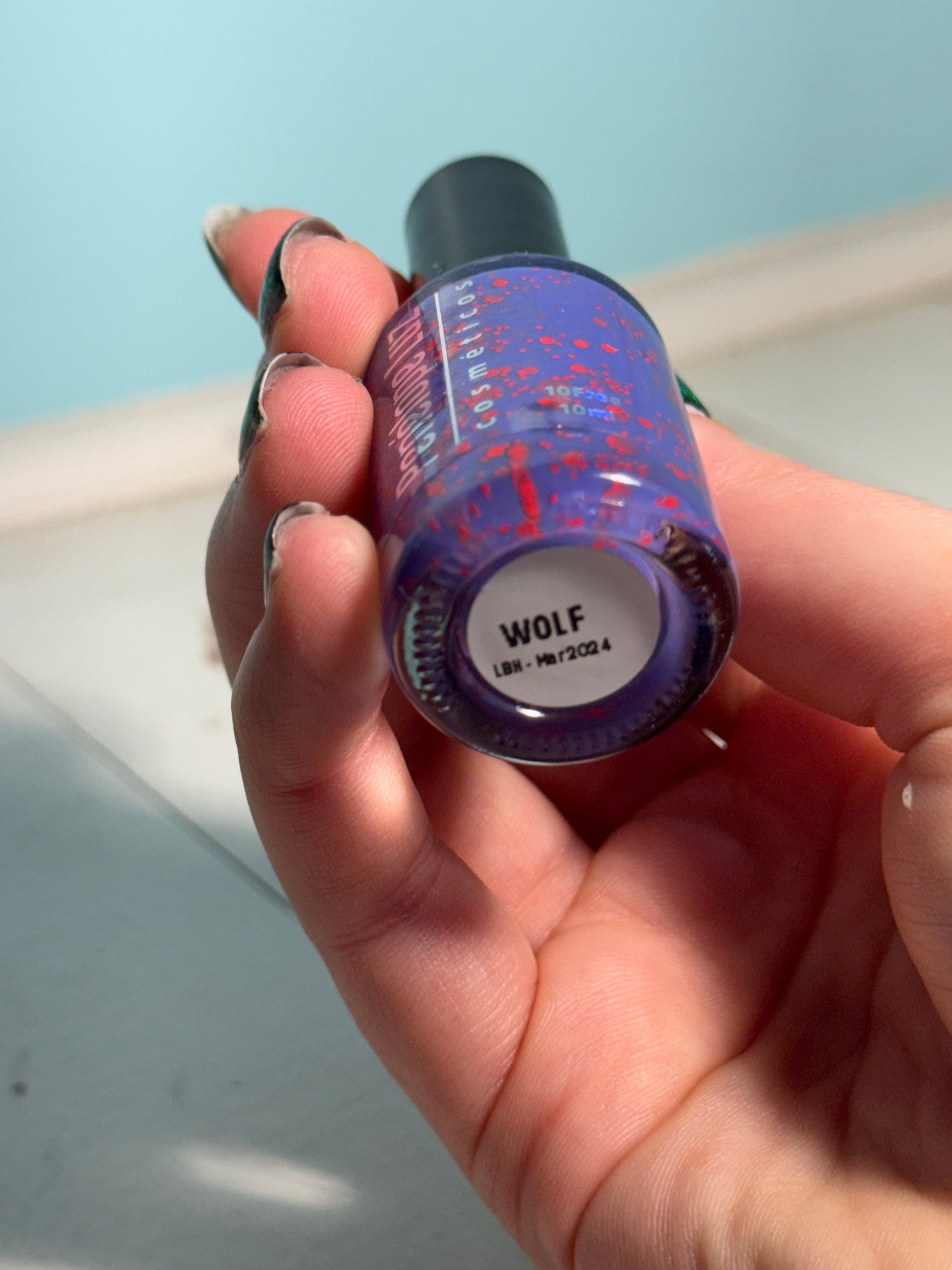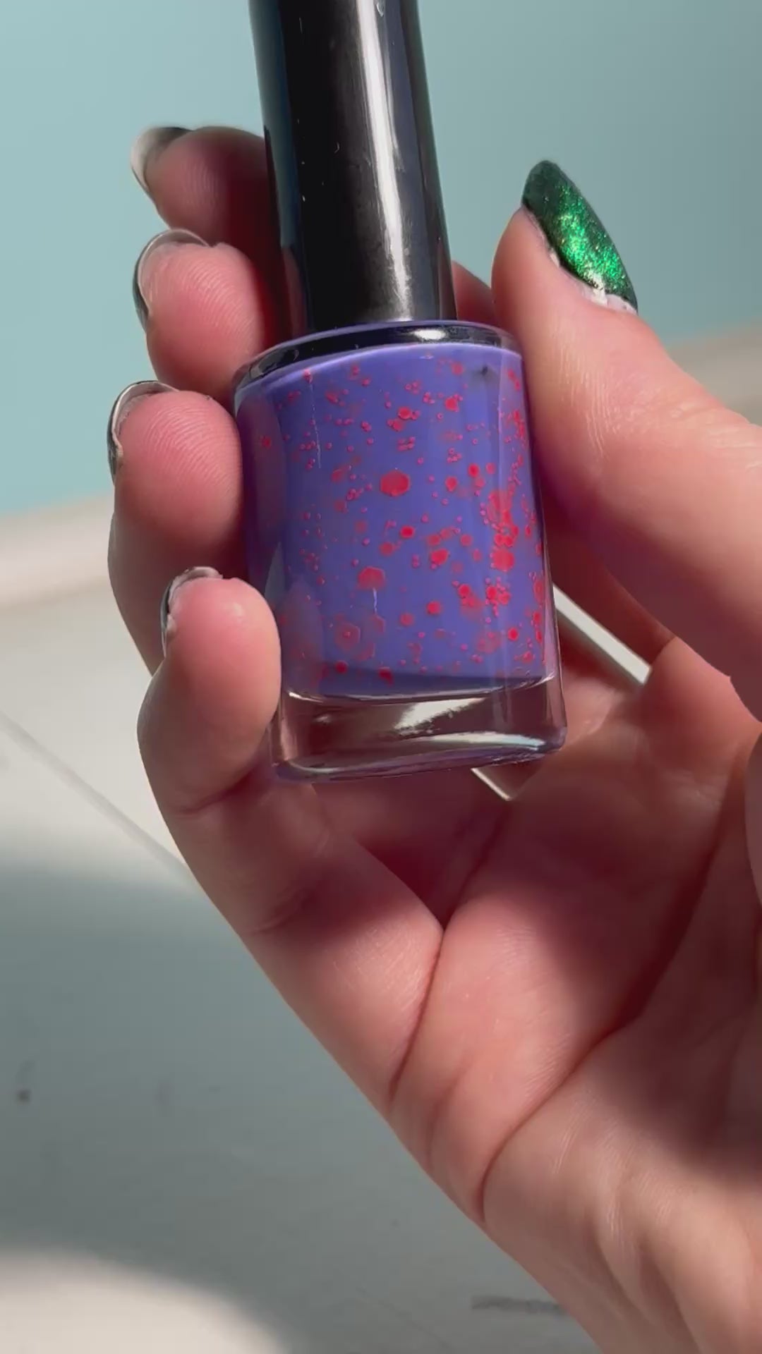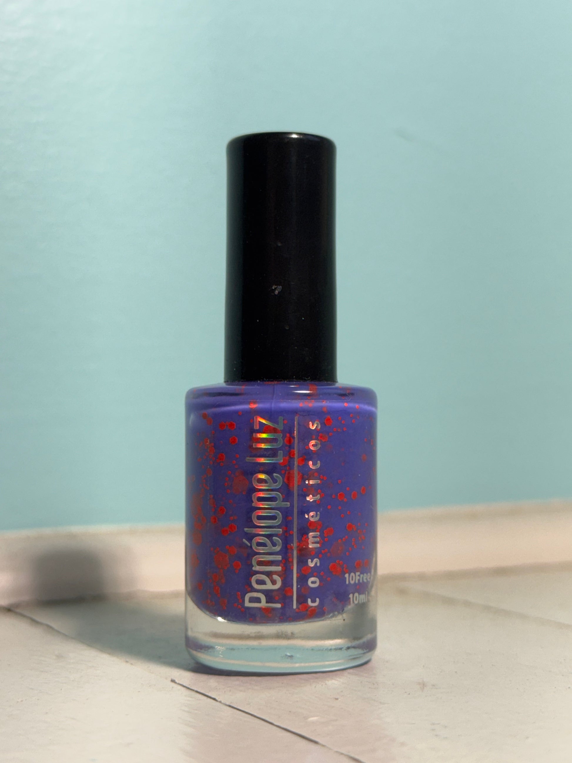 A purple base with red neon glitters.
